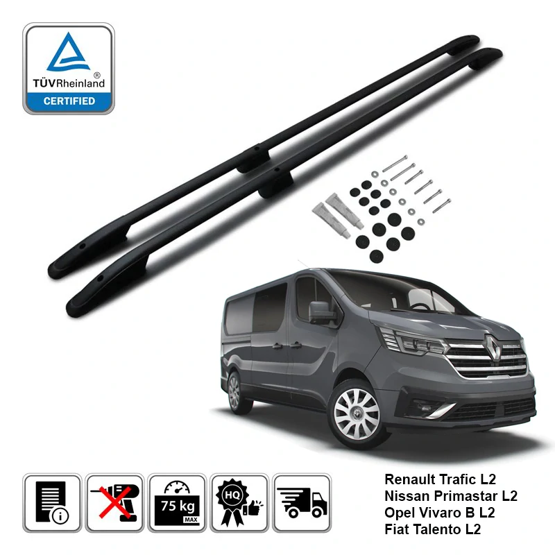 - Omtec podélné střešní nosiče černé - Renault Trafic / Opel Vivaro / Fiat Talento (L2)
